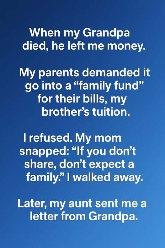 When my grandfather passed away, I thought grief would be the hardest part. But the true challenge began when the will was read. I had been left a modest inheritance — nothing extravagant, but enough to make my parents take notice.