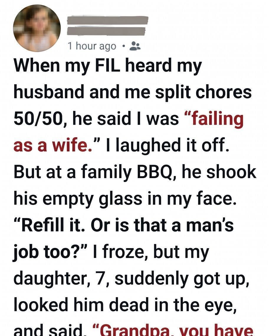 A Quiet Moment At A Family Barbecue Turns Into A Powerful Lesson When A Young Girl’s Simple Words About Fairness And Shared Responsibility Gently Challenge An Outdated Belief, Reminding Everyone Present That True Respect Isn’t Demanded Through Authority But Reflected Through Actions, Values, And The Example We Set For The Next Generation